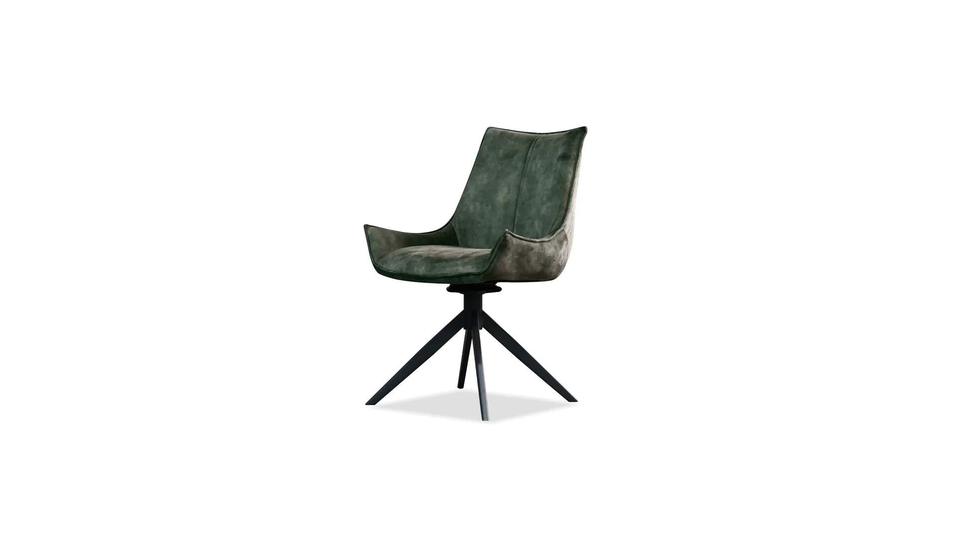 The Alexa Swivel Dining Chair combines elegance and versatility with its plush forest green velvet upholstery and sleek black 360-degree swivel base. Available also in refined anthracite grey fabric or premium leather options—classic black with a matching black base or rich Irish rum leather paired with an antique bronze base—this chair adds a sophisticated touch to any dining space while offering effortless movement and comfort.